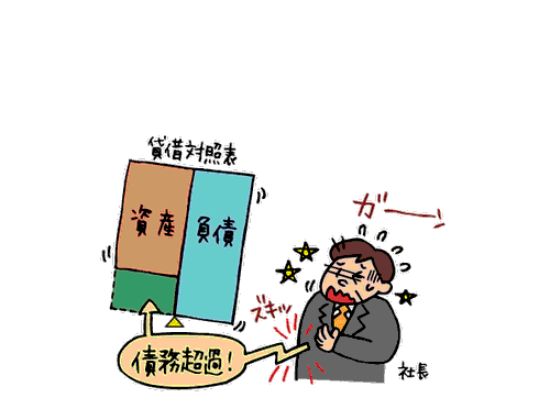 貸借対照表上で、会社の資産より負債が多くなってしまっている状態のこと。現時点で資産をすべて簿価で売却しても、借金が残る状態のことを言う。